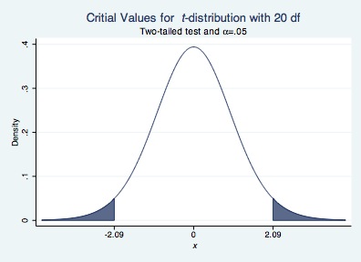 ytitle("Density") title("Critial Values for {it: t}-distribution with 20 df") ///